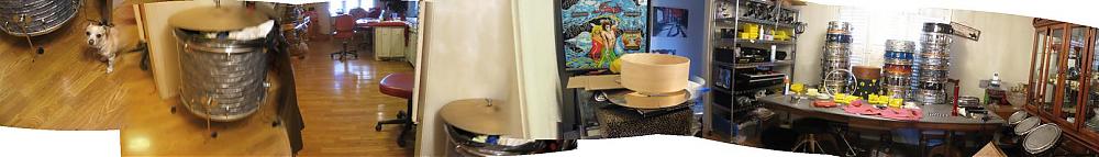 This is 7 pics stitched together of my Drum Room(heaven) aka home away from home aka"the other woman" lol