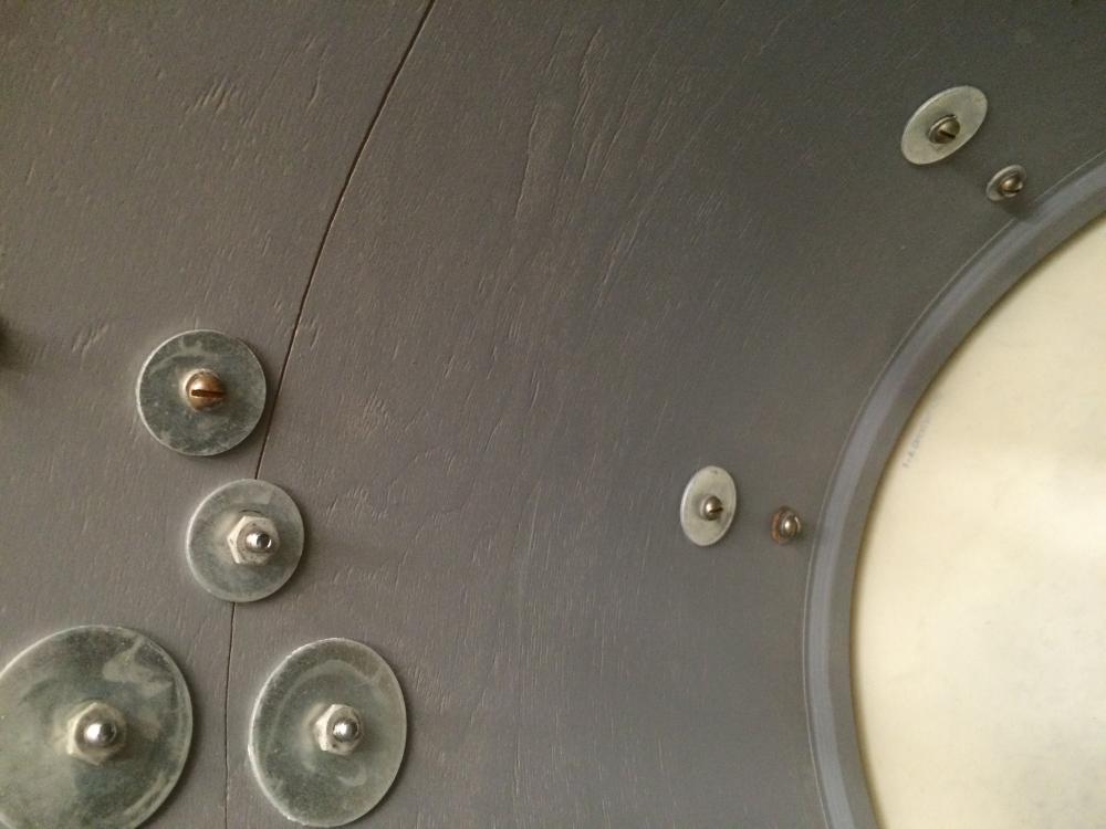 Or..... this is two 14" tom shells someone pieced together to make a 14x14 then repainted gray. Is the wrap, badge, and grommet all original? If this drum looks like it's been rewrapped, this could possibly be a 14x14 built from two 10x14 Rogers shells. So just out of curiosity, is this "crack" perfectly straight all around the inner circumference and 10" below the upper bearing edge?
