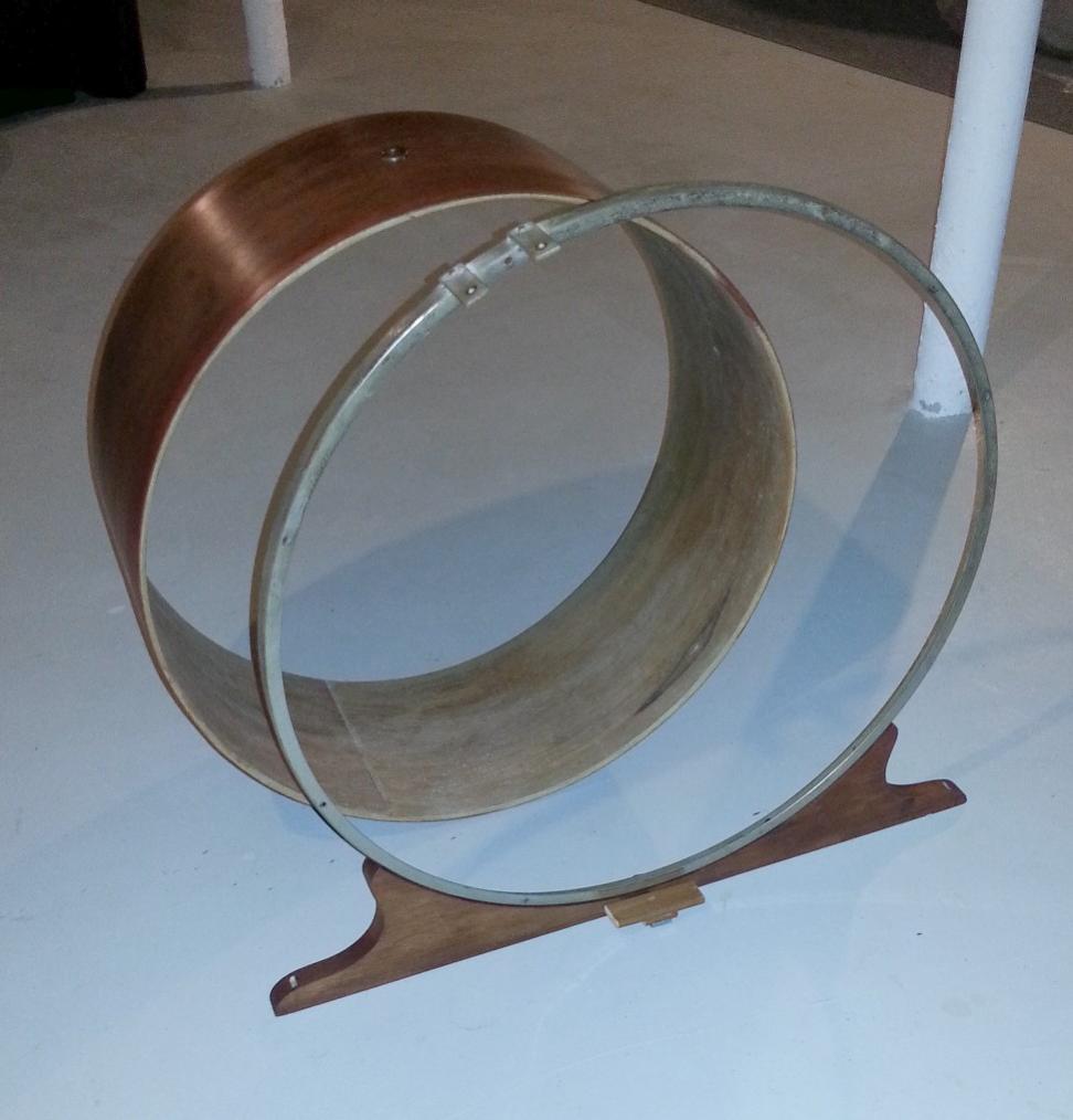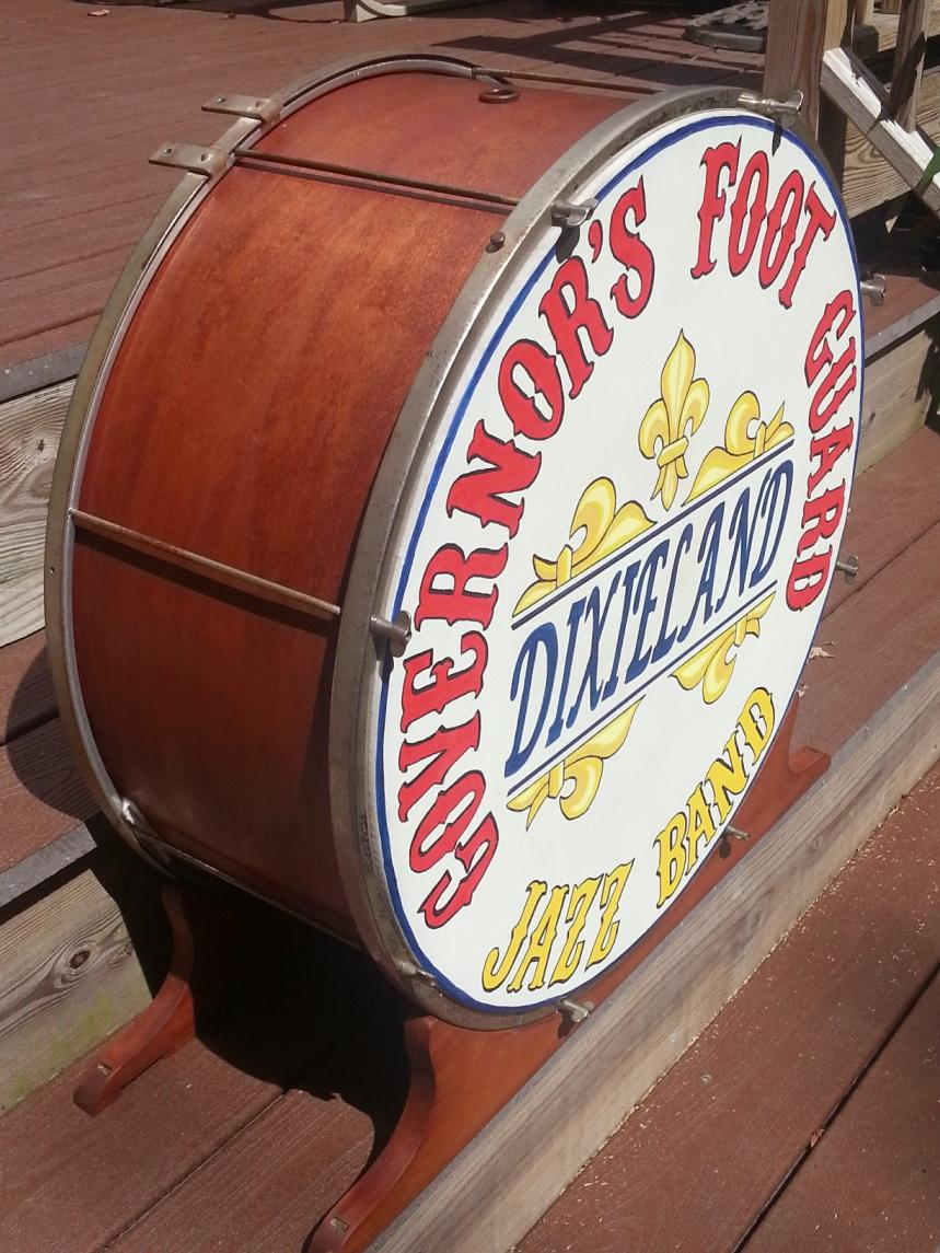 This drum head came off a French brass bass drum from 1883 that was mounted to a circus organ (Calliope) and had torn. There is a guy in Westerly Rhode Island that restores these things for a living and he contacted me about new heads for the drum. This is the original head and had been removed from the drum prior to arriving at my shop.
