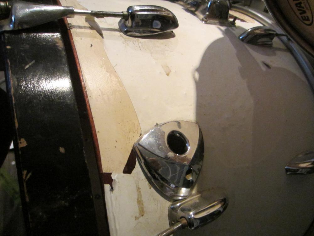 Hi! I have this 77 (+/-) Slingerland bass drum, and there what looks like a cymbal mount on it. It is not the type of cymbal arm that used to be on 60s Slingerland and Ludwig drums, with the L arm. There is a hole, with a mount that I imagined used to have a screw to fix the arm into the bass drum. When you look from the inside of the drum, it is evident that it is not an original mount. I'm looking for any information about this: where these mounts popular at any moment? Who sold these? Any idea if there was other Sling with this kind of mount?