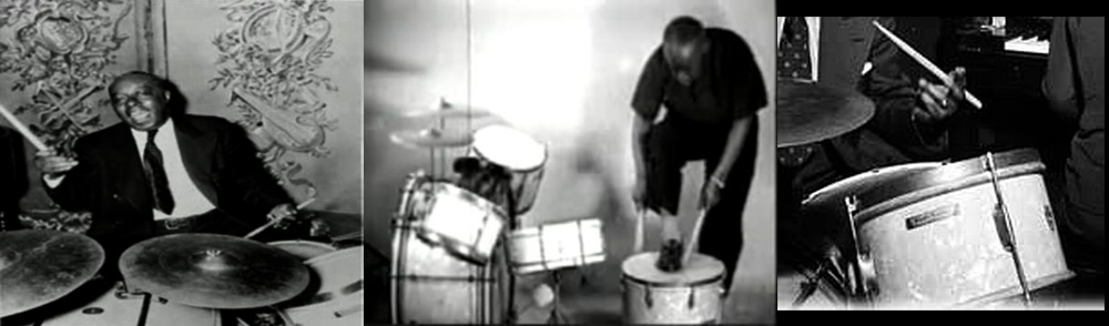 A story has it that Gene Krupa gave Baby Dodds some drums (a set???) and it appears to me that Dodds added two WMP Tom Toms to his set after he already had a WMP tube lug Bass drum. Are these supposed to be some of the drums Krupa gave to Dodds? At least one of those added toms (probably both toms were the same single lug style from WFL), the one that is in the position that the earlier China Tom occupied, is a 30s WFL (at least that’s what the badge looks like in the photo I’ve posted). Krupa endorsed Slingerland in the 30s so I find it a little weird that he would give Dodds a WFL WMP Tom Tom. Or did Dodds actually get these drums on his own or as a gift from WFL? Anybody got the scoop on this?