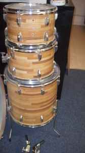 Hey everyone, I saw an ad on craigslist for a set of "vintage" drums and they're clearly of the butcher block type, but the guy says they're Pearl (there's no badges or any identification). This might be a re-wrap job, but I was wondering if anyone knew if Pearl made "vintage butcher block drums". I'm not crazy about Pearl drums, but found myself wondering. Here's the only available pictures: