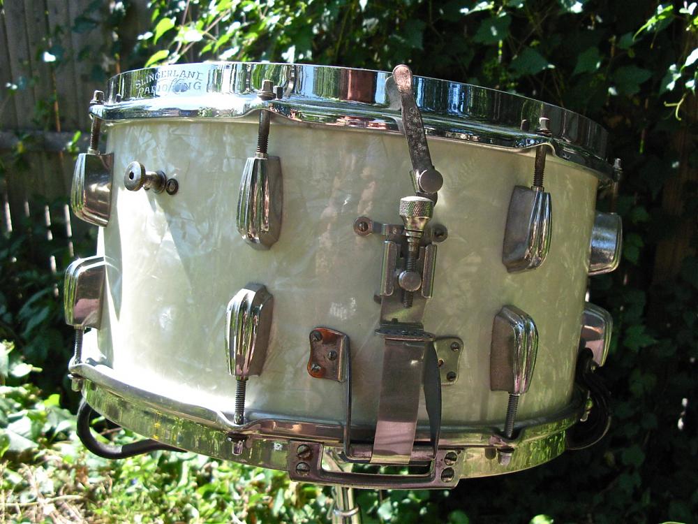 P.S. the washers on the lug screws say Slingerland Chicago Ill. I found this when changing the lug that I broke over tighting the tension rods on the top head Hurting