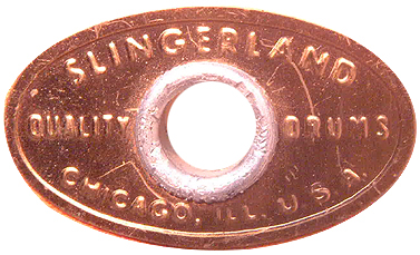 no that is'nt the badge. real close but not it. mine is a stamped badge has slingerland across the top. quauitly drums in middle on both sides of vent, on the bottom Chicago Ill. USA. it is an oval shape like the one you showed me. Mine may be the next badge change from the badge you showed me.I've included a picture of the badge it's not real clear, but it's the best i can do for now.pompa mfwMr. Pearl P.S. the washers on the lug screws say Slingerland Chicago Ill. I found this when changing the lug that I broke over tighting the tension rods on the top head Hurting