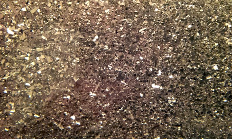 The sections for each shell will be pre-cut to exact dimensions; I don't want to ruin scissors cutting through glass bits, and the offcuts would be a waste of glitter. I am still undecided as to whether to use water-based contact cement [something like $80 per gallon up the street here] or an industrial adhesive for carpets [$18 per gallon at the same store] for attaching the wrap to the shells. One thing I like about contact cement is, it is rubbery, with some "give", and thus might be less inclined to fight the Dura Lar for "ownership" of the glitter/emulsion combo [less chance of separation].