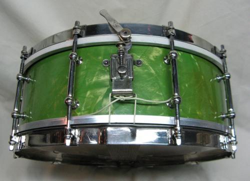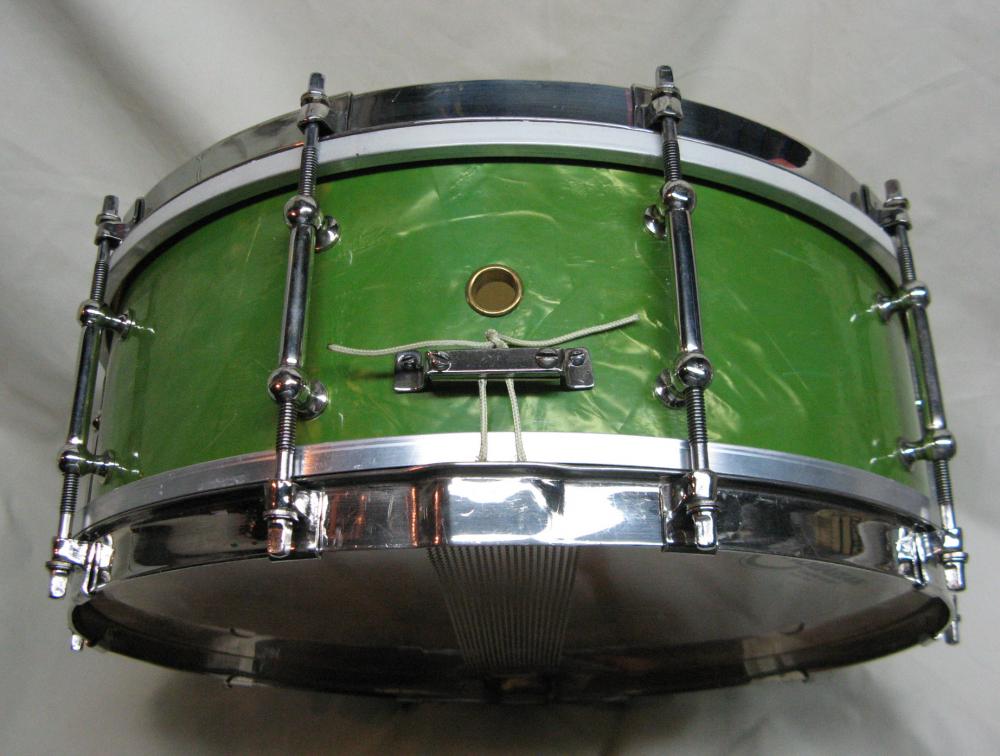 Let me pull out the 36 Gretsch counter catalog and see where the grommet is on the wood 8 lug model. Gimme a few for a scan...