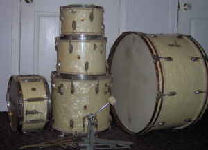 I just traded this 1946 wfl set for a mod orange element se brand new. I didn't mind letting it go because I have a 1941 set in the deluxe marble finish. That is a rare set. if i could only find a floor tom!