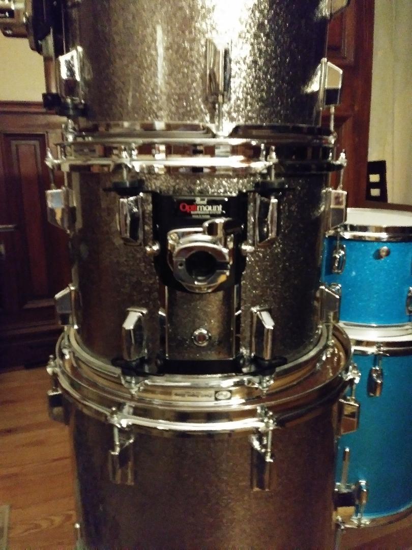 I think I might replace the floor tom leg mounts with some more modern Pearl mounts. Something that I won't need to drill new holes, of course. Going to scour ebay and see what's out there.