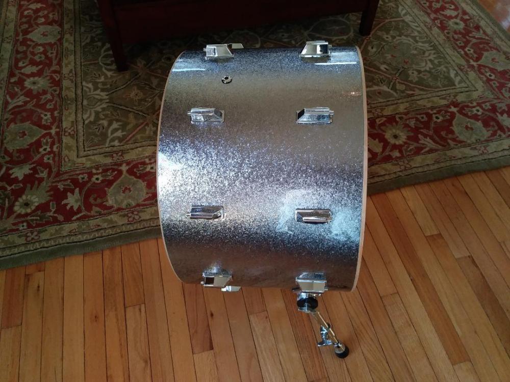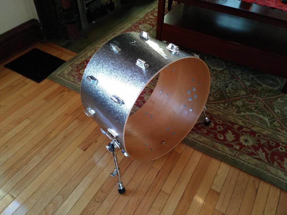 Bass & 14" tom finished. I need to clean / repaint the bass hopes then put on the inlay strips.