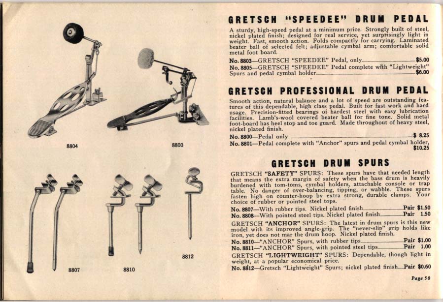 I can't find any information on Gretsch hardware before the 1960's but I have this old pedal that I'm trying to identify. Definitely has the Gretsch logo on the remnants of the sticker but I can't make out the model name. It looks like it ends in 'EE' but no other letters are clear. BANSHEE maybe?