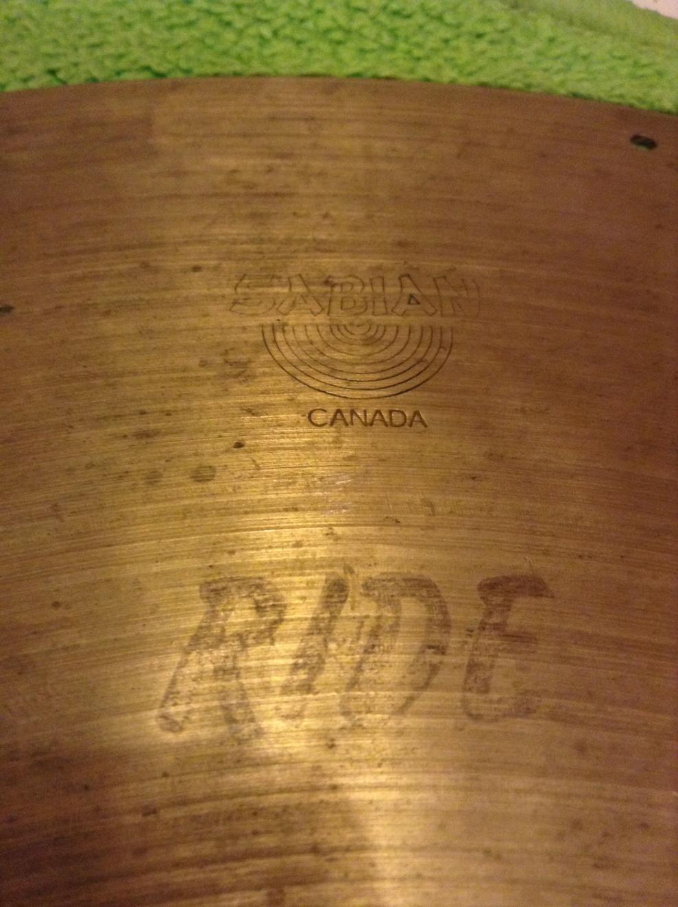 Just got home with a 20" Sabian ride and it's a nice one! It has lots of hammering and 7 rivet holes. It has the lettering used on Canadian Ks, shallow Sabian Canada stamp, cymbal logo underneath only and what looks to be the same signature as my 90's HHX crash. Looks more like "UmmmmPhuuuud" than what is refered to as the "vinnie"signature. I'd love it if you knowledgable people could help me fill in the blanks once more! Thanks!