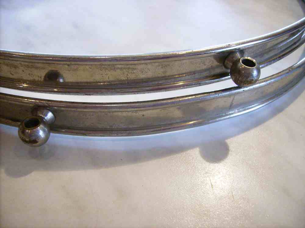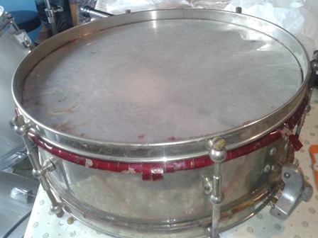 Disassembled drum on elkie details to determine the status and scope of restoration rabot.Korpus, rim joists and bolts are made of brass, followed hromirovkoy.Ne gets oreginalnyh three boltov.Eto not problema.Ya ordered neighbor turner made of brass three bolta.Pruzhini like me it seems too oreginalnye.There are only 18 pieces and attached to the base of the three sections of 6 pieces in sektsii.Mne seemed just no two springs, but closer examination under a magnifying glass, it turned out that all the strings in place.It is not resolvable issue for me are lining the mechanism of the tensioner spring and plastic working and resonator His custom size 14.17 "nowhere to be found.