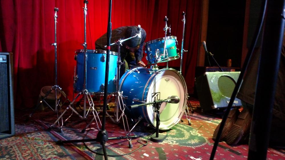 Well, the 3 piece kit was a CB 700 in good shape (12/16/20), I just cleaned and polished them up (Pic below-not me behind them; another drummer was using them at a recent show). It came with two generic but nice lightweight cymbal stands, a generic lightweight snare stand and two Pearl CX-500 14" hi-hats (drummerjohn ears' just perked up!). It came with a PDP Double pedal in good shape, and the rototoms turned out to be original Remo "Beeline" Rototoms with the original stand (6/8/10)!!! The Ludwig 1123-1 Hi-Hat stand was complete, but the top tube has major rusting on it.