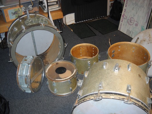 Well, here's my first true restore attempt...this set's been in my family since it was bought new in the late 60's...I finally got it off my oldest brother who had it stored in his garage for the last 20 years. Both bass drums have dates of June 7th 1968 on them...just 9 days after I was born :) So I kinda feel this kit was meant for me Cool Dude