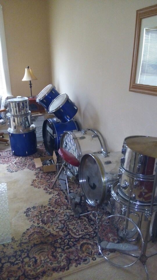 I came across a for sale ad for a "drum lot" which has mostly junk firewood drums by the looks, and in the corner of the pic there is a cool little flat based Camco hi hat stand.