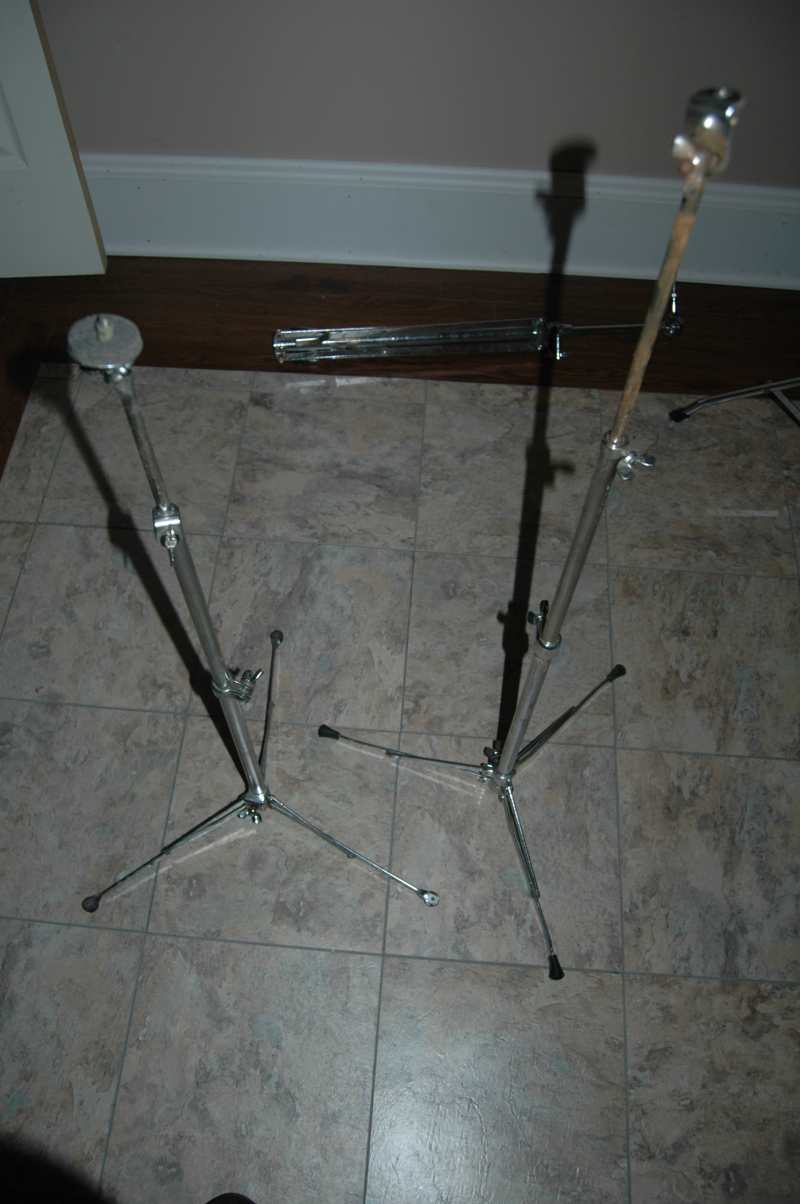 I have 2 non-descript (no visible label or marking) smallish cymbal stands with legs that open to a flat position (i.e. flat to the floor). The pair do not match.