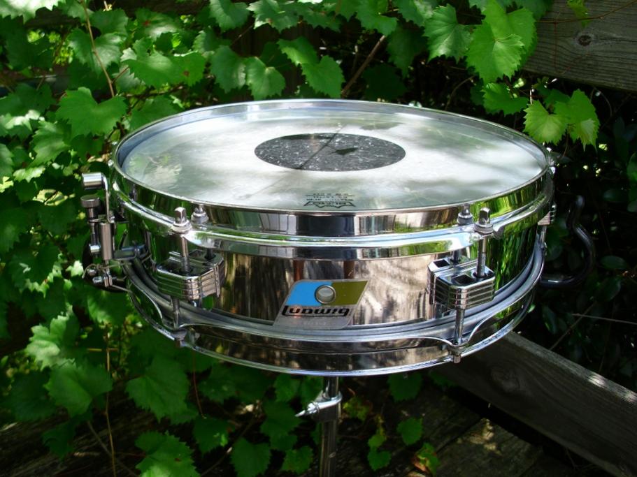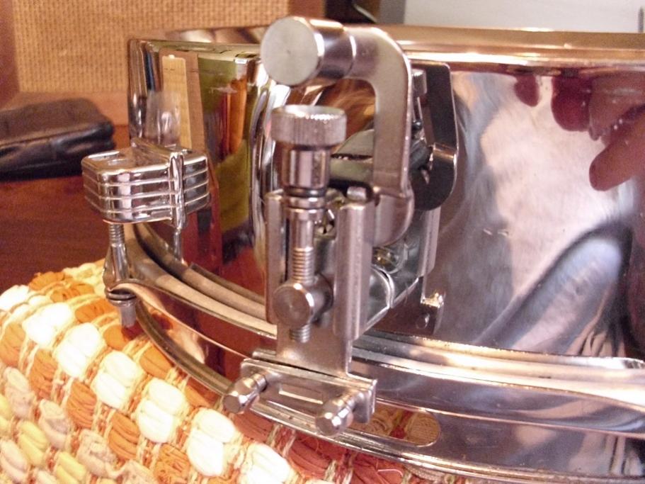 Drum is in overall nice condition. Has a few common pit marks and small scratches here and there. Is good and clean but could probably use a nice polish if you wished to do so. I'd say nice enough for your collection but not too nice to take to play and enjoy. Has the script logo snare butt which would be correct for this drum as seen on some late 60's/early 70's models. Has 20 strand Pearl snare wires installed. The heads are older Remo pre pies, which I prefer. Clear black dot up top and Ambassador snare side. I have Ludwig plastic tension rod washers on top of the conventional washers to keep a few of the tension rods from peaking out of the lugs. I think with new heads, this may not be needed. Drum sounds fantastic and is ready to put to use! As usual, I've probably over explained it a bit. Just like to be clear on the condition.