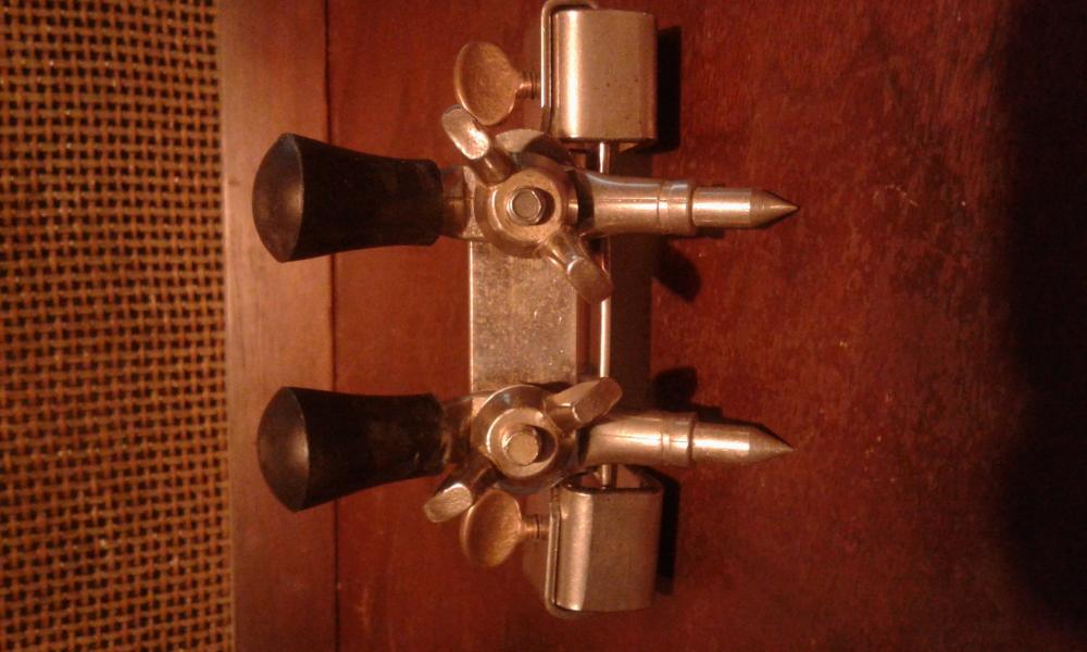 Very neat vintage bass drum anchor in nickel finish. Most of these were made by Walberg & Auge and used by the american drum companies. I use these on all of my sets. Work great. This one is good and clean with nice rubber tips. Please pm me here or email to [email]mikelayton@bellsouth.net[/email] if interested. Thanks...Mike