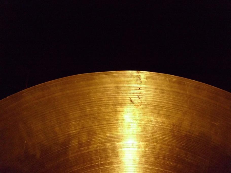 This is a mid 50's Avedis Zildjian 24" Block Stamp ride cymbal (one of the Large Stamps). Weighs a nice medium 3512 grams. This weight makes it very versatile for many styles of music. Was owned by an older retired Jazz Drummer. This cymbal sounds great and has seen plenty of play time for sure. Block stamp models are known for their wonderful sounding bells and this one is no exception. Cosmetically, it's what you'd expect to find on a 60+ year old cymbal of this dimension. It has stick marks, some edge nicks, and a ding on the top side about an inch in from the edge. One area to the left of the stamp seems to be just a bit out of round. Has no cracks and just a hint of a keyhole. These 24's are big beautiful beasts and will do a lot for you. On the stamp image, you can see a small engraving that appears to be an E possibly? I'm no good at sound files but have included one just the same. Please feel free to pm me here or email to [email]mikelayton@bellsouth.net[/email] if you have any questions. Thanks as always!