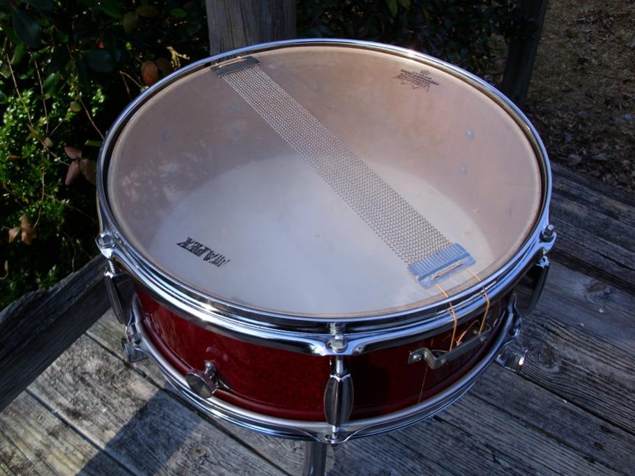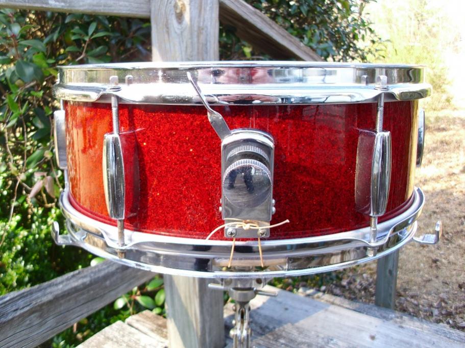 Nice and clean 60's MIJ 5x14 6 lug in Red Sparkle. Maybe a Pearl stencil? Surely someone knows. All original parts except for the heads. Strainer/tone control work smoothly. No issues. Add this to your Red Sparkle collection on the cheap! Sounds good! Can pm me here or email to [email]mikelayton@bellsouth.net[/email] . Thanks...Mike