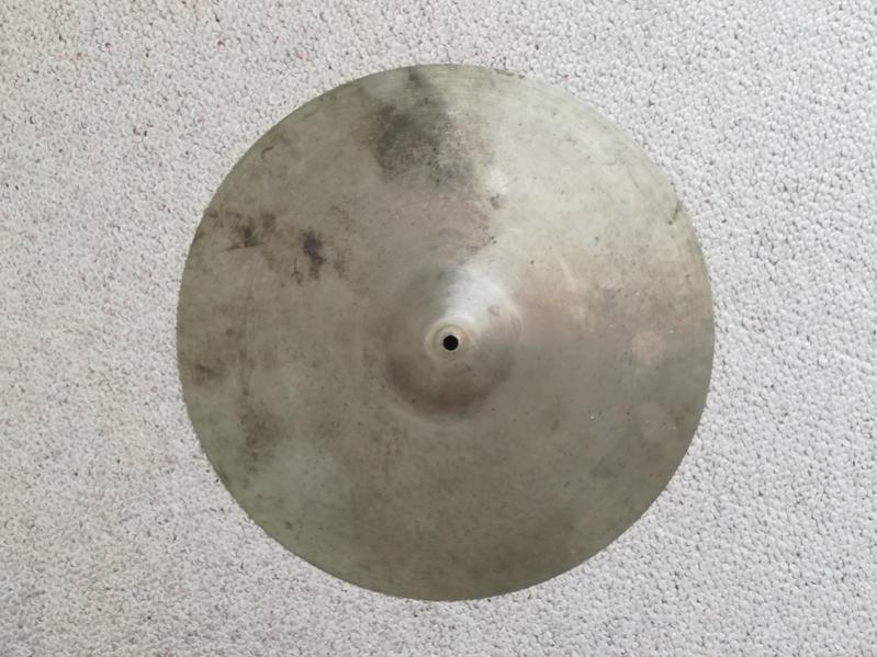 Some patina and some filth, didn't want to clean it in order not to ruin the patina. Very thin and bendable. Very nice hammering on the bottom side. Quite bright crash, but serves better as a light ride in acoustic situations in my opinion. Very cool and funky sounding bell.