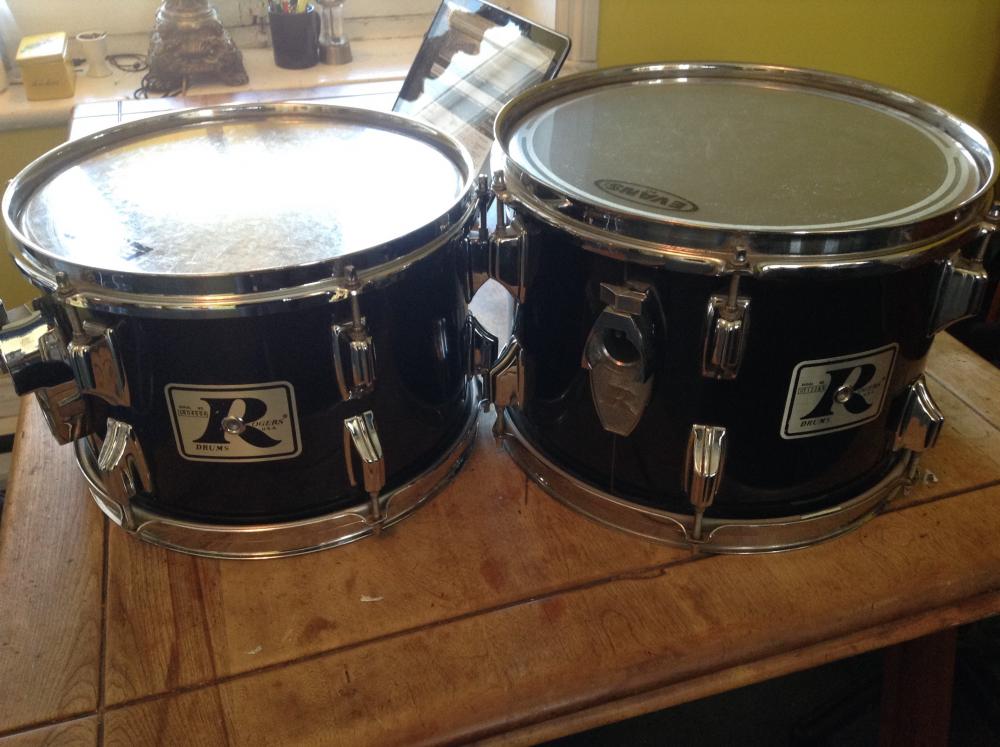 Up for grabs are a 12" & a 13" black Rogers big R tom. No they aren't mint, but complete, without ply separation or weirdness, tune up nicely & have that Rogers sound. I'd probably keep them, but I have a kit in my sites. Now at $80 for both plus actual shipping (I need to move these fast). PM me your address and I'll get a fast postal quote. Cheers!