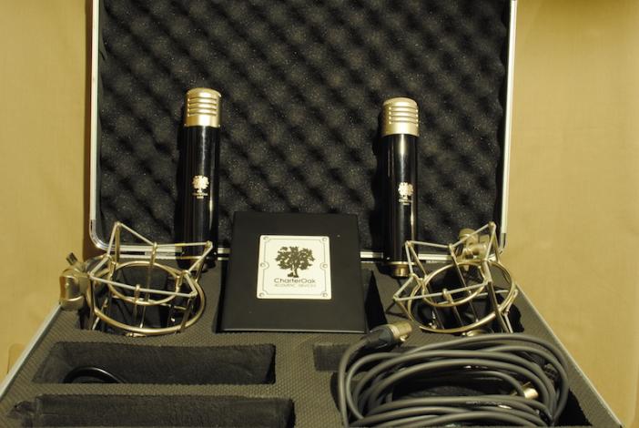 Matched pair of Charter Oak S600 tube mics. Includes two microphones, two cables, two shock mounts, power supply and case. Very light use in private studio. Beautiful condition, checked recently by Mike at CO.