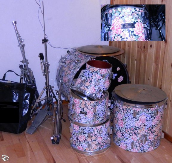 70s pearls with cool japanese flower finish. Quite a large set, too. Ideal from some glam metal band. I really kinda like them!