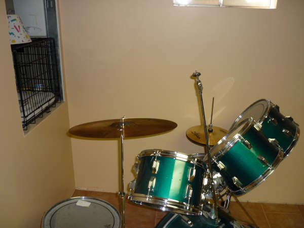 I'm looking at a Rogers kit and thinking there might be something wrong. It's a Fullerton as far as I can tell in a green sparkle or maybe just a regular green wrap(did they make that?) Anyways it's 24/12/14/15/16 with a powertone and hardware and several Zildjians(ZHT) and 2-3 real Zildjians(hopefully signed by some guy in Turkey!) From the photos they have the script logo and the speckled grey interior but the modern Memriloc hardware. No big "R" anywhere on this kit all script logos. The finish I've never seen before and it does not look like a re wrap. With the interiors I'm thinking Fullertons. Did any drums ever come with the script logo and the updated mounts-early memriloc?? It's going for about 600. No extra holes either as far as I can tell. I haven't got my paws on them yet but even still a good score?