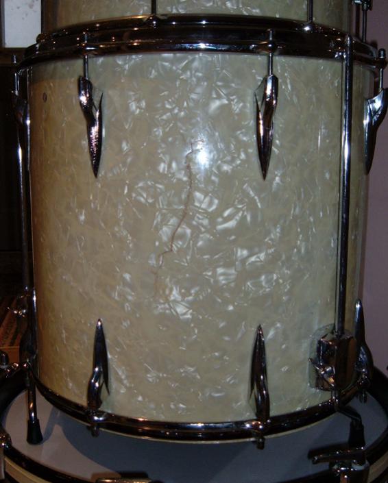 There is some damage to the wrap on the floor tom (see pic), but it appears to be on the back side of the drum I think.