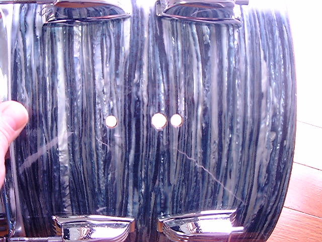I am the original owner ( bought when I was a kid ) of a 1967 Ludwig Oyster Blue Super Classic kit . While cleaning the shell with Novus today I discovered an extra hole behind the tom mount . The huge washers used with the mounting screws covered it all these years when I was happily unaware . Looks like somebody at the factory drilled the airhole in the wrong panel but luckily for Ludwig it was in the panel the mount was to be fitted so just cover up the goof - no prpblem !!!!!! DOH