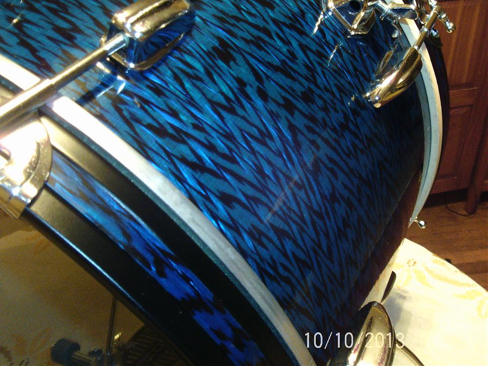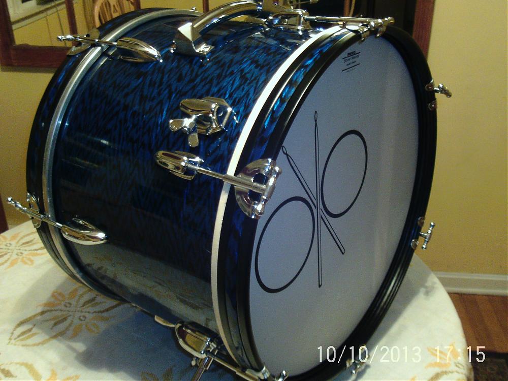 That bass drum looks pristine now. Great job! What a shine. I think it's kind of neat that the BD logo has a spot for your initials. I like that idea. Very retro-cool. Can't wait to see the rest. Good luck with the Kents too. Cool1