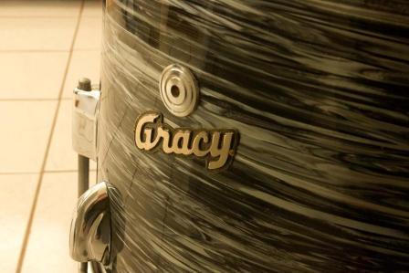 I recently had the good fortune of picking up a set of Gracy drums in very good condition. A search on this forum has revealed info on 3 ply kits with reinforcement rings. The kit I found is a 6 ply deal in a cool wrap, also, it has die-cast hoops and rather nice lugs and badges. Please see the attached pictures. Has anyone ever seen a kit like these before? I'm quite certain that the hoops are original because I doubt the original heads, which I have, have *ever* been removed. BTW, the sizes are: