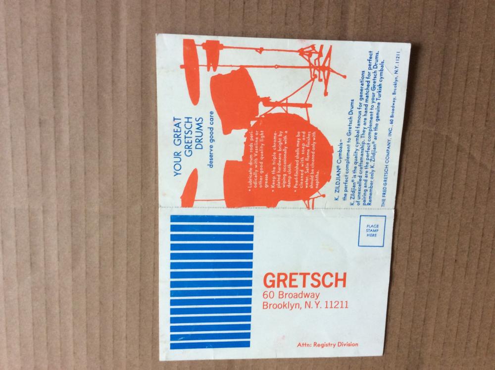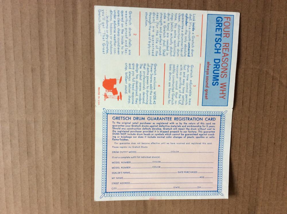 Not too many of these around!..Unused RB Gretsch registration card!