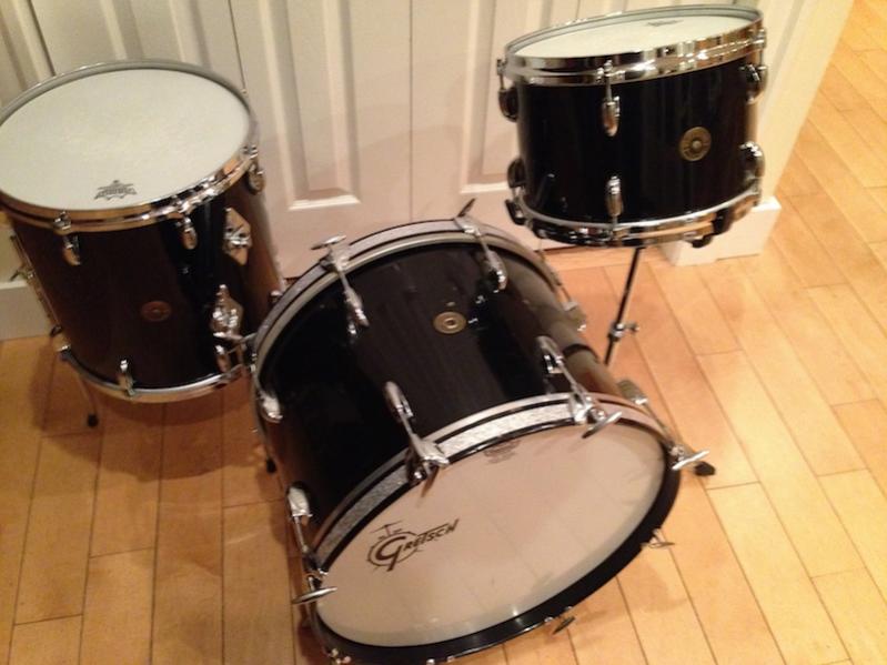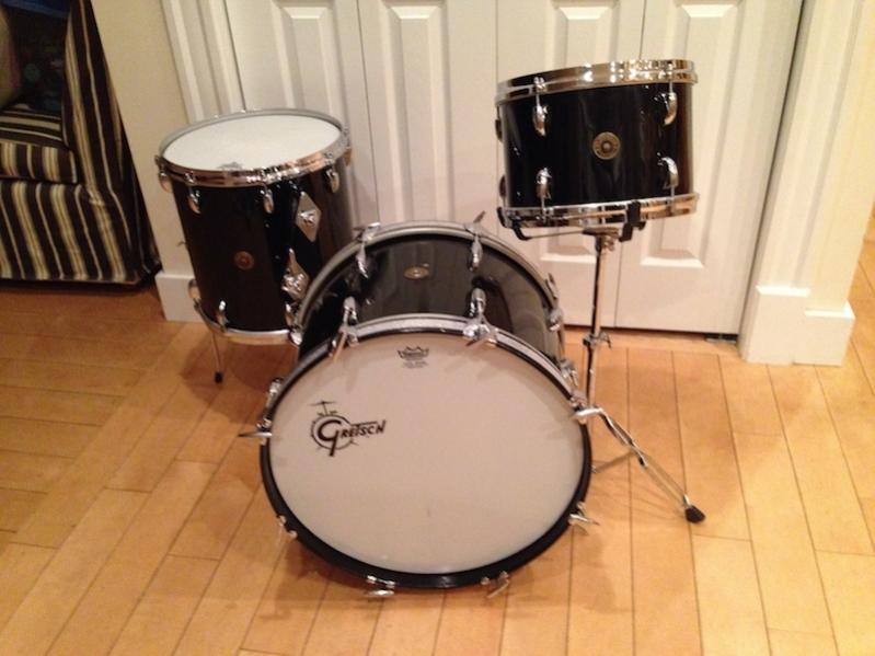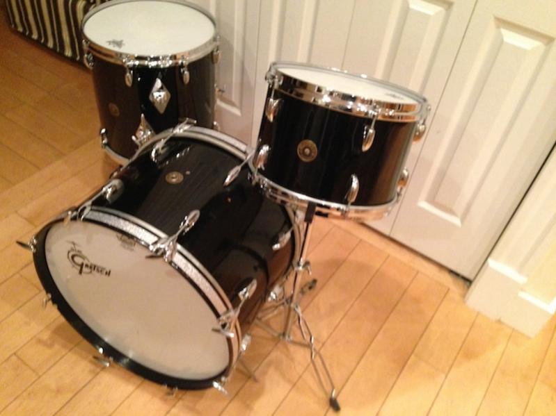 3 piece 20,12,14 kit from the 50's...Remo heads fit nicely. Bass drum heads spin like a top. The 12 and 14 were re-wrapped sometime in the 80's. The Bass drum is the original and a 3-ply shell. The consolette is missing from the bass. Hoops are original with original paint but Inlays are from Precision Drum. Hardware on these drums is beautiful, especially on the 12 and 14..no pitting, just bright and shiny... some of the nicest I have seen on a Gretsch set. Most importantly, the drums sound killer..just like all those Jazz records from the 50's and 60's. Bass drum being original does have more scratches and wear than the other two, including what seems to be the occasional cigarette burn. The 14" has an extra diamond mount that was there when I got them, and missing one muffler.....All 3 drums have Silver Sealer and they are from before the Orange Paper Tag days.