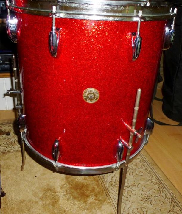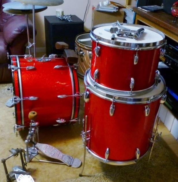 Red Sparkle wrap in beautiful condition - only a few minor scratches - amazing considering the drums are over 60 years old.