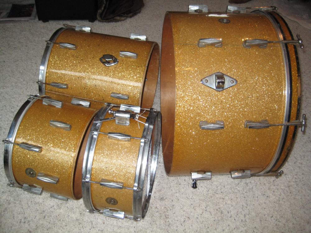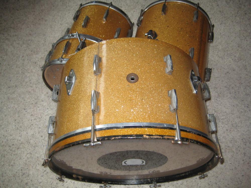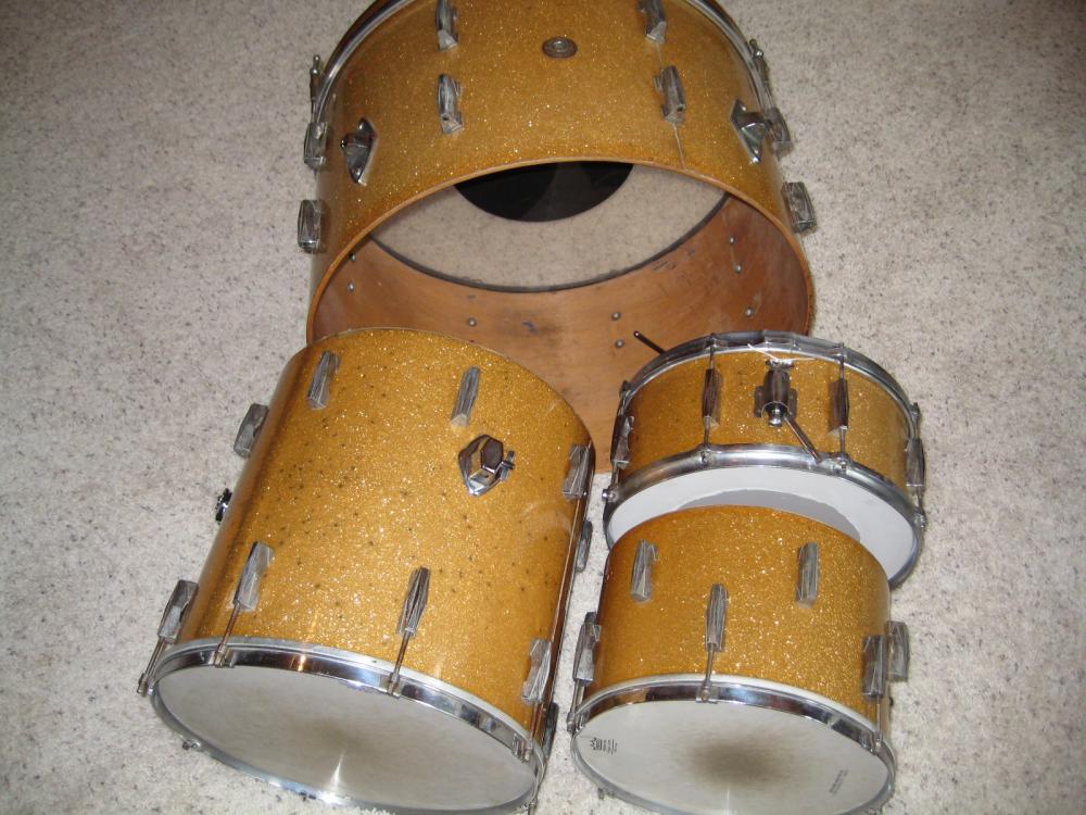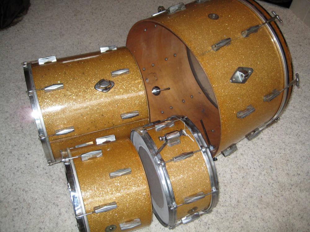 Well it looks like this will be my next project. Date stamped 1946 Gretsch Superstructure shelled kit. 13,16,24 and matching snare. A lot of stuff is missing and some extra holes in the bass drum shell along with leg bracket mods to the floor tom. Just thinking of making a players kit out of it by adding some modern components ie: hoops, claws, etc. as I think it may be to costly to try and restore, trying to find original parts. Thus I would change hoops, clips, claws, etc. and sell off the original items. The snare drum is pretty much complete and sounds fantastic.
