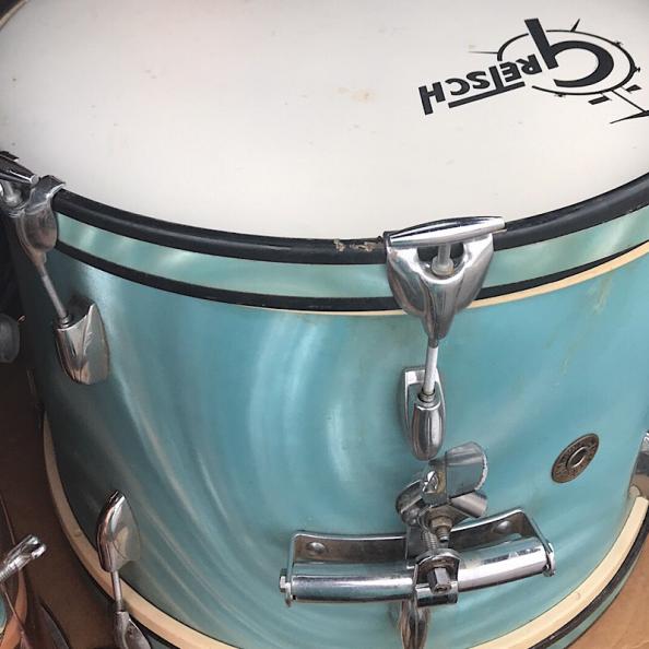 Any idea of a value of a 14’ Gretsch round badge aqua satin flame in good condition is? Silver interior tag is in great shape. Even has original heads. I also acquired a 20 inch bass similar great shape with original heads. Thanks!
