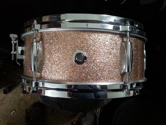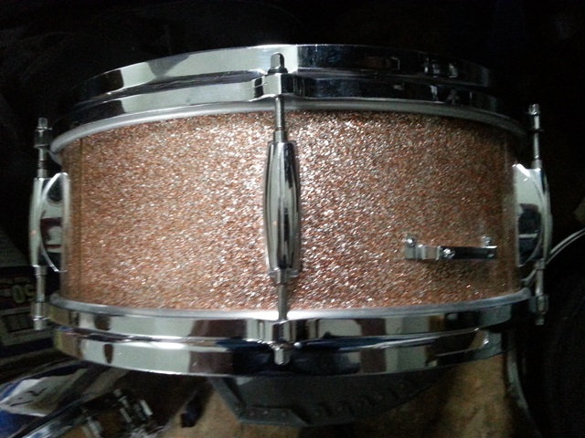 5x14 1962 RB six lug snare, Excellent condition Original Champagne wrap, Excellent condition Original chrome hoops & lugs, very clean drum, damaged throw off, missing badge & wires. Its on the table in the back, Detail pics on request