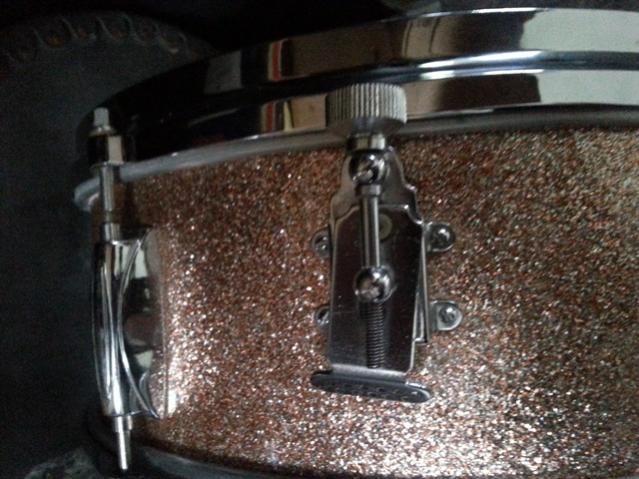 5x14 1962 RB six lug snare, Excellent condition Original Champagne wrap, Excellent condition Original chrome hoops & lugs, very clean drum, damaged throw off, missing badge & wires. Its on the table in the back, Detail pics on request