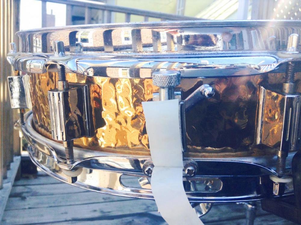 I picked up this 13" x 3" Ludwig hammered bronze piccolo recently, but I got a little GAS happy and honestly didn't really need several snares that I bought. So I'm contemplating letting this one go. There are a few spots of oxidation on the shell, but since these are clear coated I can't do much to alleviate that. Beautiful crack and warm woody bronze tone. No weirdness, P-80 strainer works perfectly as do all lugs. I removed surface rust from rims, but there is a tiny bit of unchroming where some rust was. I'm looking for $300 plus actual shipping for Quebec City, Canada. If interested send me your zip code and I will get an estimate rapidly. These are fairly rare and Ludwig only makes a Black Beauty in these dimensions, which aren't cheap.