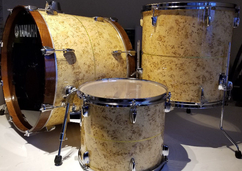 22x16bd, 16x16ft, 13x11rt. 9 ply "mahogany" shells. Custom birdsey wrap. Said to be from 80's/90's. Asking is $260