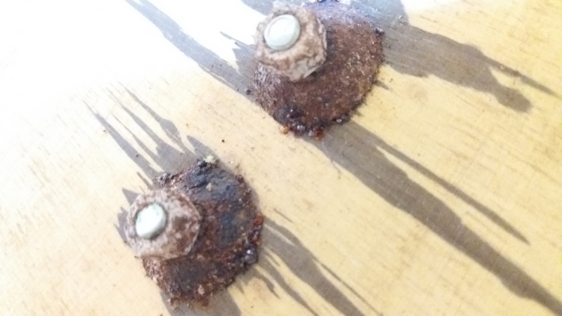 The screws are original. The heads are hexagonal top in a semicircle, the entire screw is chrome-plated. Such until today are produced in Italy.