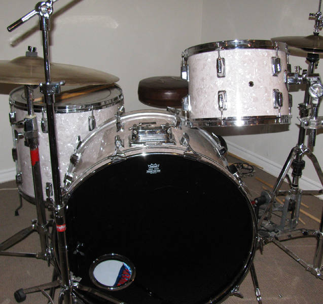 I think this kit is from the 70's but I'm not sure. I've attached a couple of photos, the kit is in fantastic shape, I'm just curious about it's age and wood type. Sizes are 24" 13" 14" 18". Thanks.