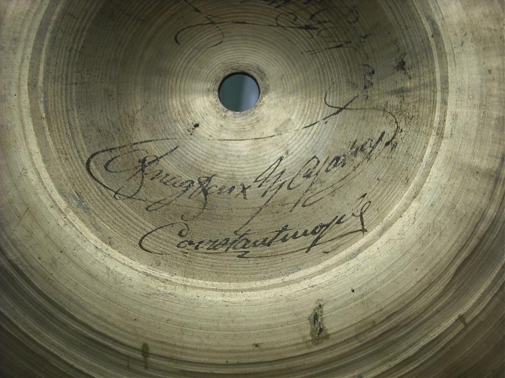 ok. so i see the pic you posted has the ajaha signature on top of constantanople. which i can see is the same as on mine(more or less) but as in my pics on the first post there is also something else written on the other side of the bell. can you make that out? that would make 4 identifiers of some sort correct? im starting to think this should be in some drum museum somewhere. shall we start the bidding at 1? do i hear one thousand dollars? joking.
