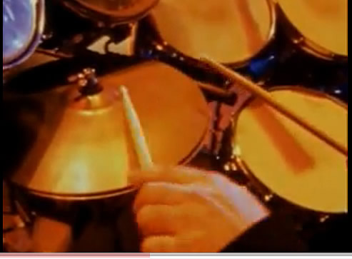 Cymbals show up early in the video