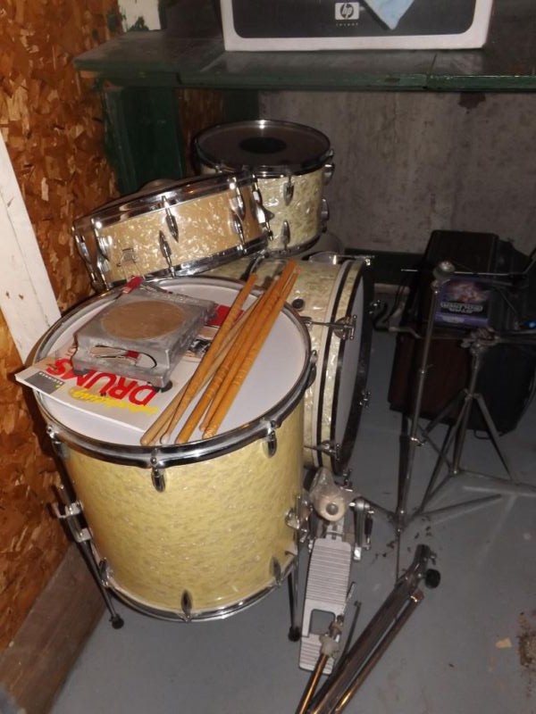 Okay, I dove on this one. 2 prior views on Kijiji when I responded, asking if there were any cymbals, badges, and when would be a good time to come by for a look. Didn't hear back until hours later, but it gave me some time to do some research - most right here on VDF. From looking at the shot, I'd recognized what appeared to me to be Ajax, Bullet lugs on the snare and floor tom. The kick, and rack appear to be Hoshino by the lugs, though I'm not sure about the t-rods on kick. Don't know a lot about the British stuff, but the few that I've had, I've been quite impressed with, so I researched the snare, as Ajax, and immediately found two, almost identical on ebay, both listed for about $300.00. When I finally heard back, I was told, yes there are cymbals and the brand was 'Edgware', however, they had someone coming to look at the drums, 'tomorrow', but if it fell through they would let me know. Looked up Edgware, and found the link to Ajax. Snare appears complete, though you can't see strainer in pic, and it looks like the matching floor tom, (16"?) though the tom appears to have lost it's original, die cast hoops. Had been keeping my eyes open for word back, but ad has since been removed... Wha hoppen? Who managed to squeeze in there before me - one of the prior '2 views'? Was it you wooltonboy? Not too disappointed - really don't have the $100.00 right now, or the need for any more, semi-valuable orphans, but I do hate to see a nice deal get away, and that snare might have been sweet.