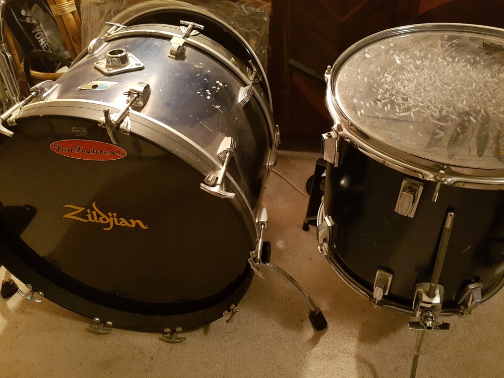 Ignore the floor tom, it's a Brady Fiberglass 14x14 that came with this set, unfortunately no keystone floor tom... I might be on the hunt for one soon (16"), keen to re-wrap this in black oyster pearl, give it the ol Ringo treatment since it's a bit dinged up anyway.