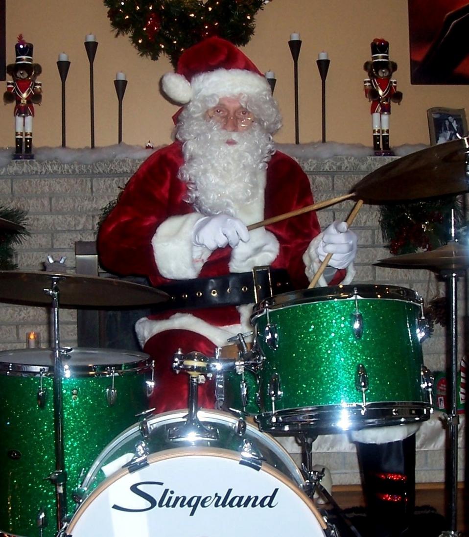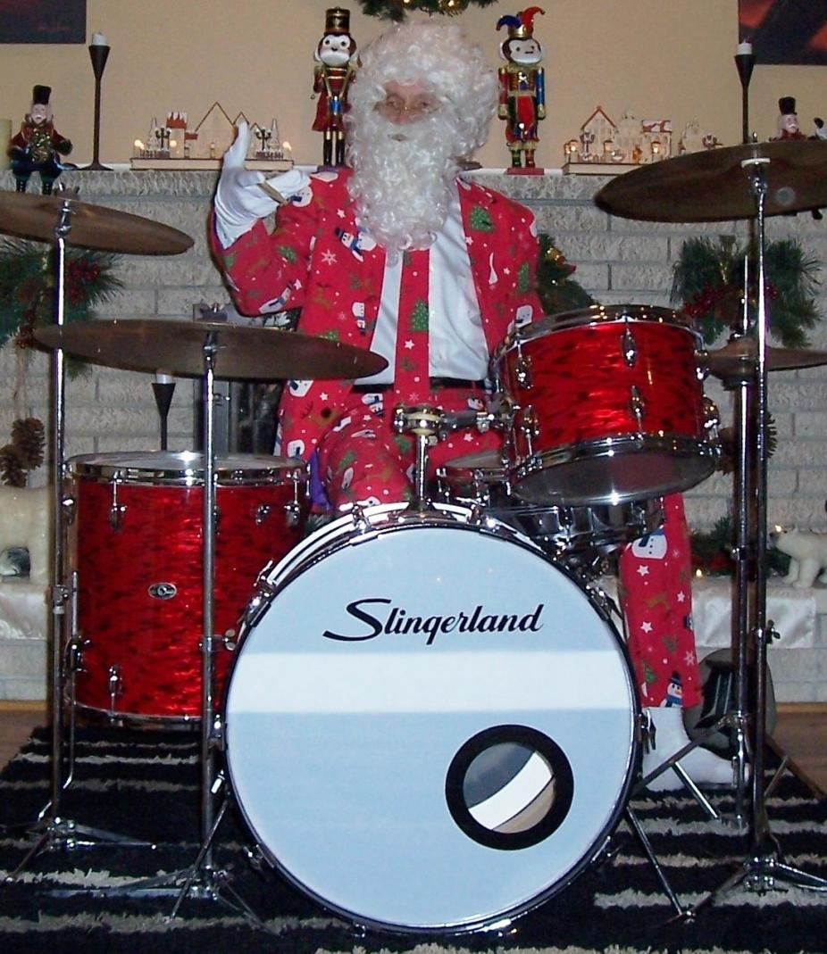 Oldschool: Those are some very festive photos. Nice matching Christmas drum sets!!