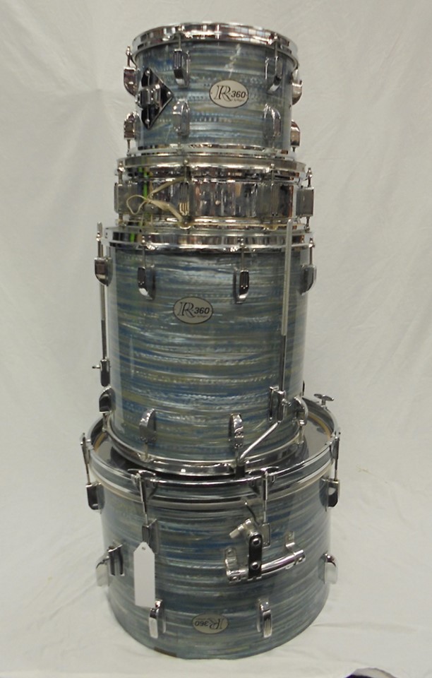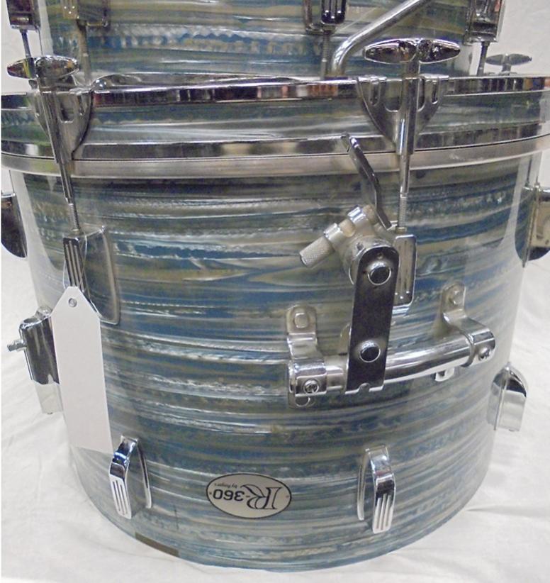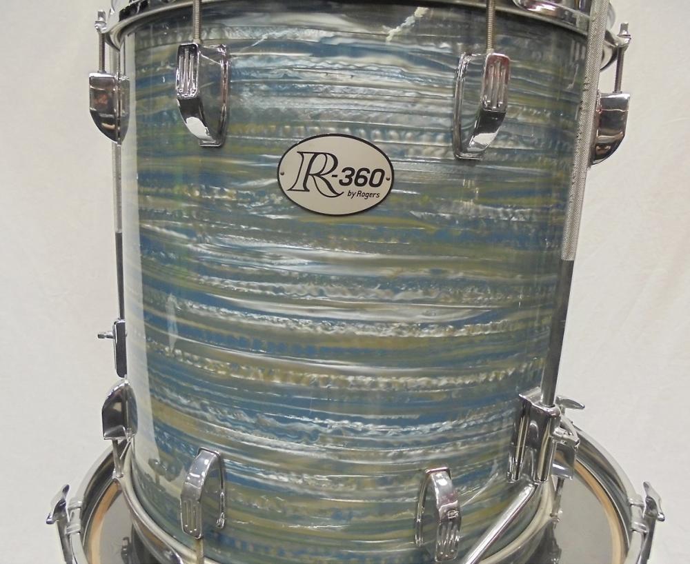 I picked up a nice 3 piece Rogers R-360 kit (12, 16, 20) in what appears to be the Blue Strata Pearl wrap (based on the posted Rogers finish catalog from 1965 on our forum). It also came with a R-380 snare.